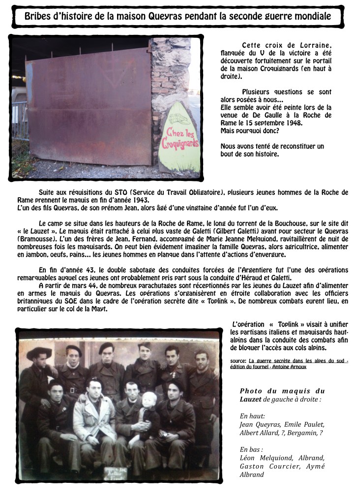 Nous remercions la fondation de la Résistance pour avoir publié notre article concernant le maquis du Lauzet sur son site du musée de la Résistance: https://museedelaresistanceenligne.org/media.php?media=11597 L' Histoire continue de s'écrire. Chaque recoin de la maison et du quartier "le mas des Queyras" sont des témoins directs des siècles passés. Nous empêcherons toute destruction du patrimoine collectif. Passez de bonnes fêtes!