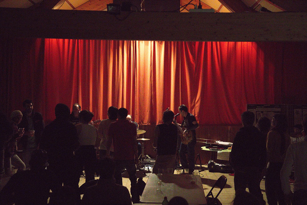 Repas partagés les midis, le samedi soir soirée festive pizza et concert (ou musique) à la maison Croquignard.