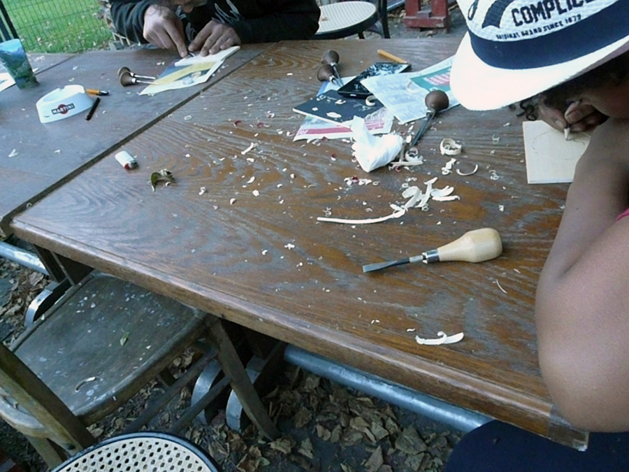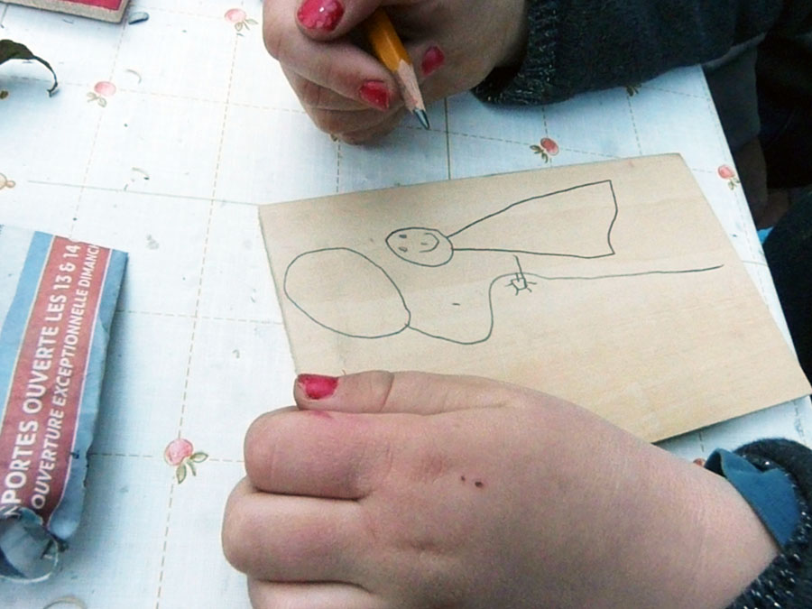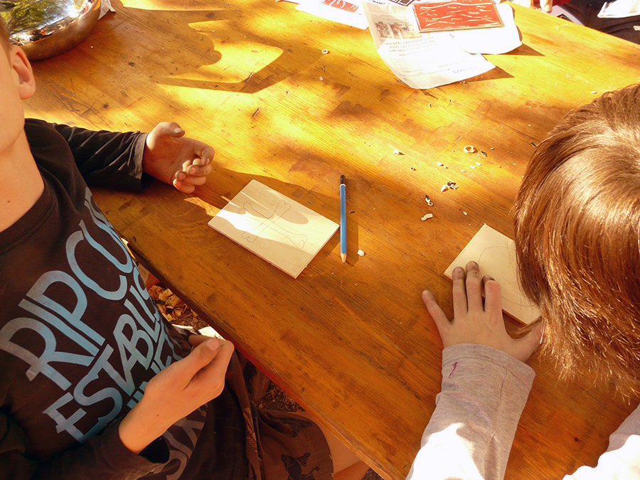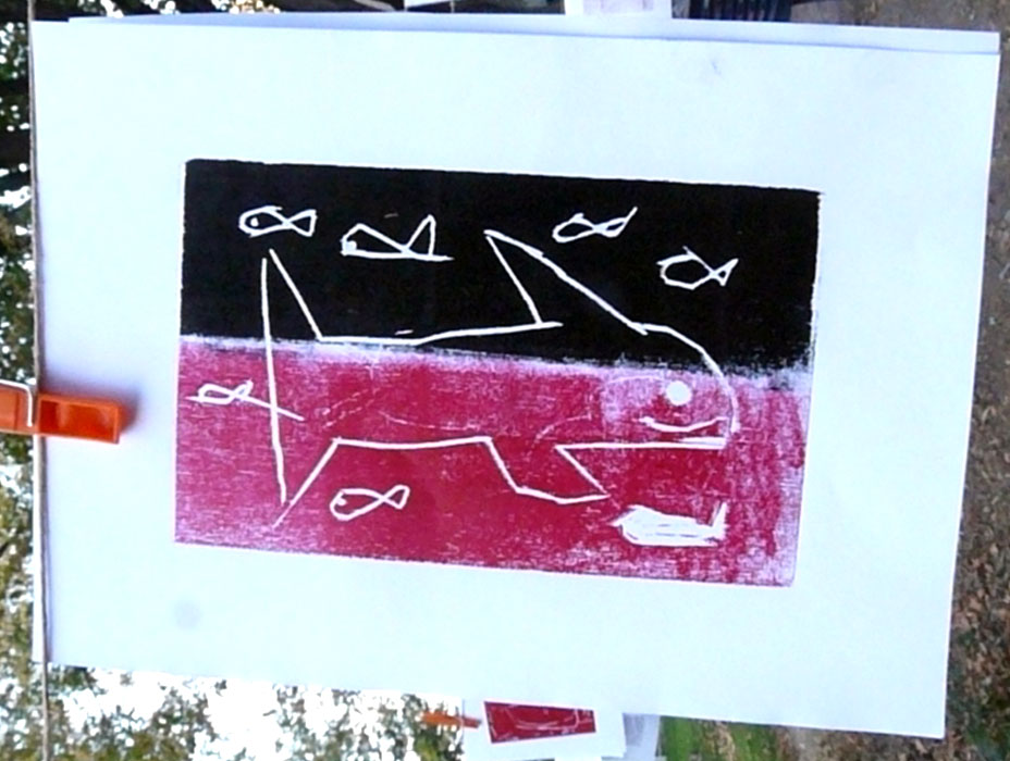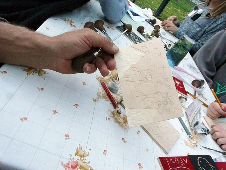 Où petits et grands ont découvert le dessin en gravure sur bois, très facile, puis l’impression des motifs sur papiers.