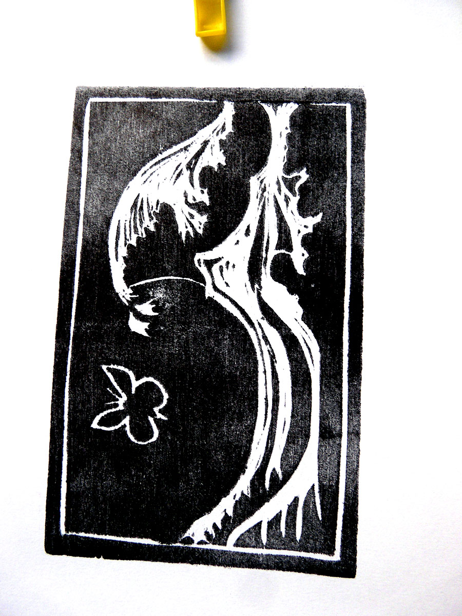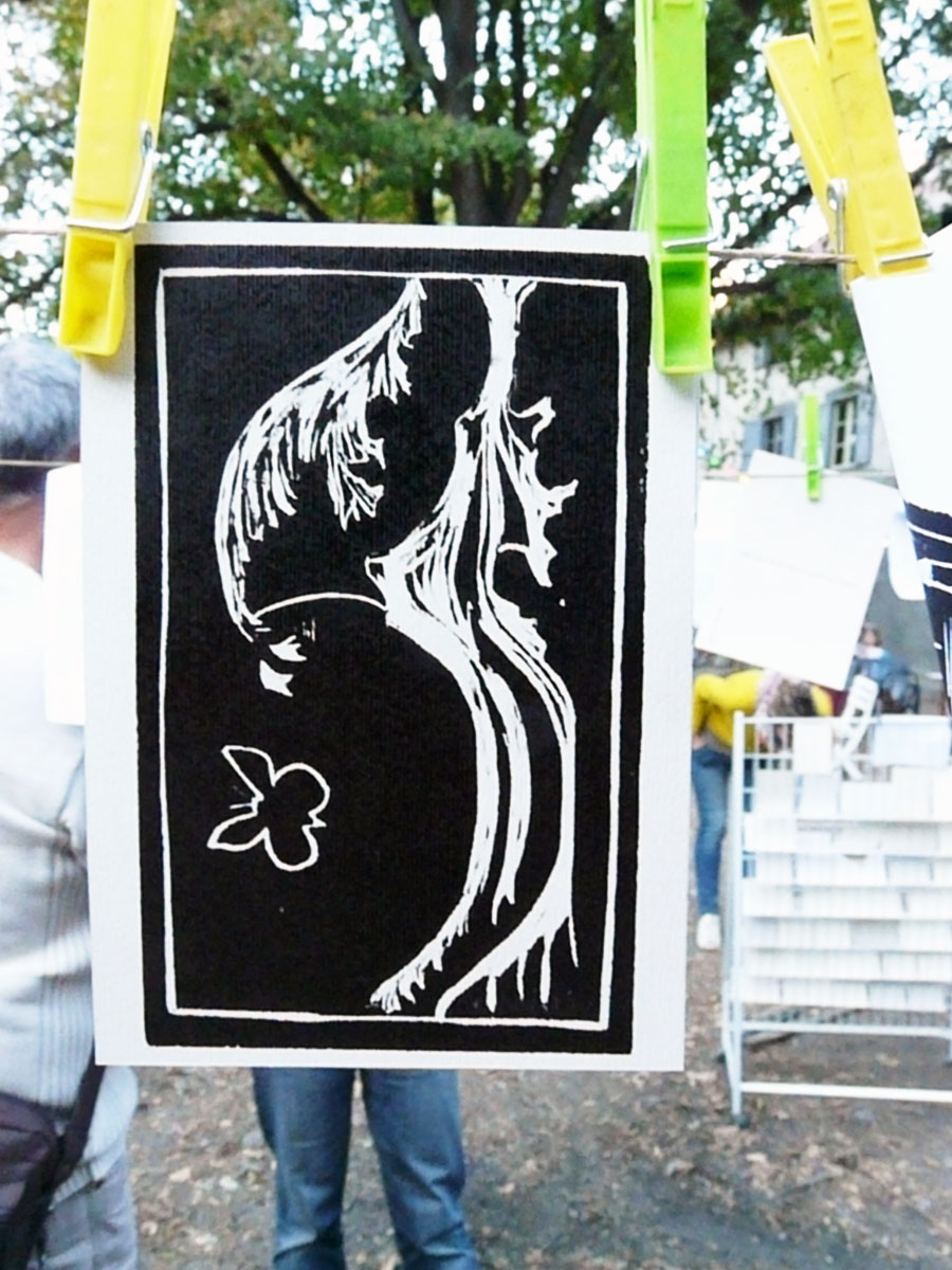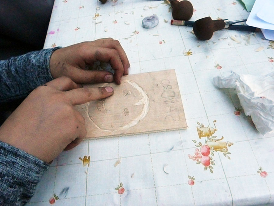Venez apprendre avec l’asso » l’Âne hautain & le Bélier sauvage » à graver un motif sur bois pour ensuite l’imprimer, une des plus ancienne technique d’impression.
